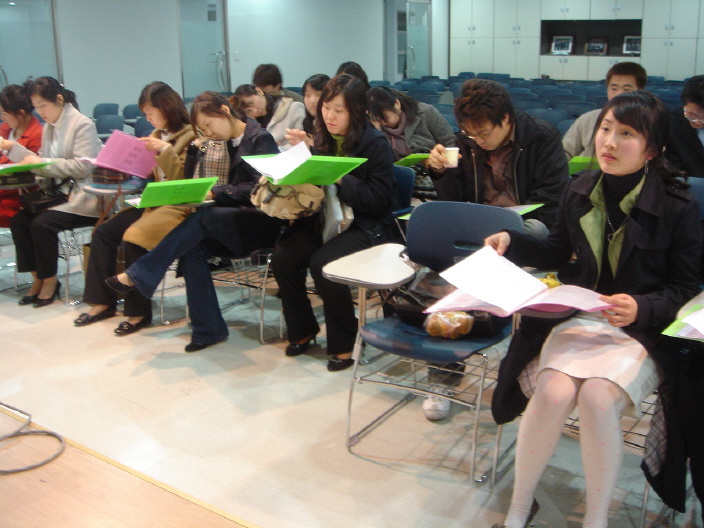 (사진2) 오리엔테이션 / 빡신 훈련일정에 놀란?? 미림 / 미림이 뒷편으로 중국에서 온 방문용 형제도 보입니다(^^)
