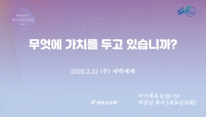 • 새로남교회는 한국교회저작권협회를 통해 한국음악저작권협회(KOMCA)와 CCLI로부터 교회저작권라이선스와 스트리밍 라이선스를 취득하였습니다. 새로남교회는 한국음악저작권협회(KOMCA)와 CCLI 교회 저작권 라이선스 및 스트리밍 라이선스 규정에 따라 비영리 예배 목적으로 이용합니다. 본 영상에 광고가 재생될 경우, 본 교회가 아닌 노래의 저작권자가 결정한 것으로 수익은 교회가 아닌 노래의 저작권자에게 분배됩니다. 본 교회의 라이선스 취득 사실을 한국음악저작권협회(KOMCA)와 CCLI에서 확인할 수 있습니다.
