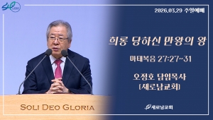 • 새로남교회는 한국교회저작권협회를 통해 한국음악저작권협회(KOMCA)와 CCLI로부터 교회저작권라이선스와 스트리밍 라이선스를 취득하였습니다. 새로남교회는 한국음악저작권협회(KOMCA)와 CCLI 교회 저작권 라이선스 및 스트리밍 라이선스 규정에 따라 비영리 예배 목적으로 이용합니다. 본 영상에 광고가 재생될 경우, 본 교회가 아닌 노래의 저작권자가 결정한 것으로 수익은 교회가 아닌 노래의 저작권자에게 분배됩니다. 본 교회의 라이선스 취득 사실을 한국음악저작권협회(KOMCA)와 CCLI에서 확인할 수 있습니다.