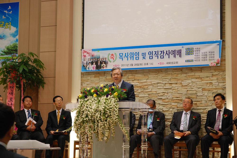 담임목사님께서는 지난 5/28(토) 새화성교회 이효남 목사님의 목사위임 및 임직감사예배에 참석하셔서 "하나님의 마음에 맞는 사람"(사도행전 13;20~23)의 제목으로 말씀을 전해주시고 축하와 감사의 마음을 전하는 시간을 가졌습니다.