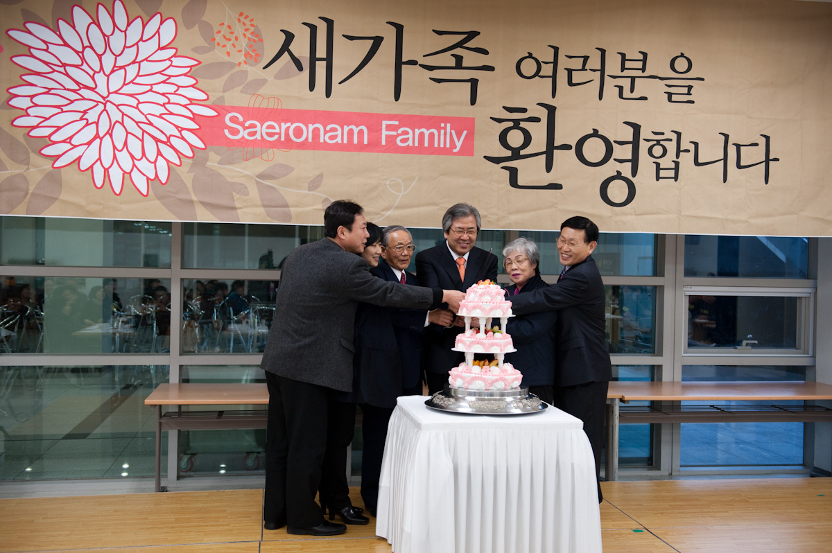 담임목사님은 환영사를 통해 새로남교회에 한 가족이 됨을 축복하며 새로남교회에 정착한 새가족을 환영하는 시간을 가졌습니다. 장로님소개와 교역자 소개를 마치고 새가족들과 함께 케익을 커팅하고 축복하는 귀한 시간을 가졌습니다.