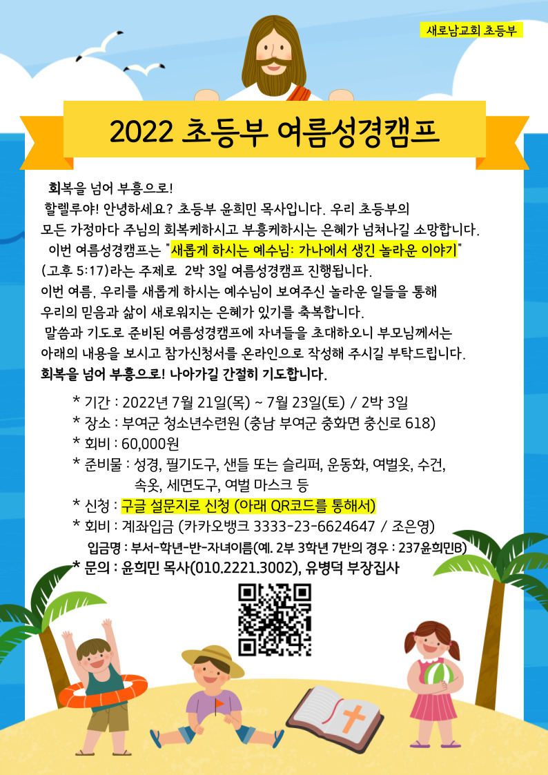 2022년 초등부 여름성경캠프 안내
