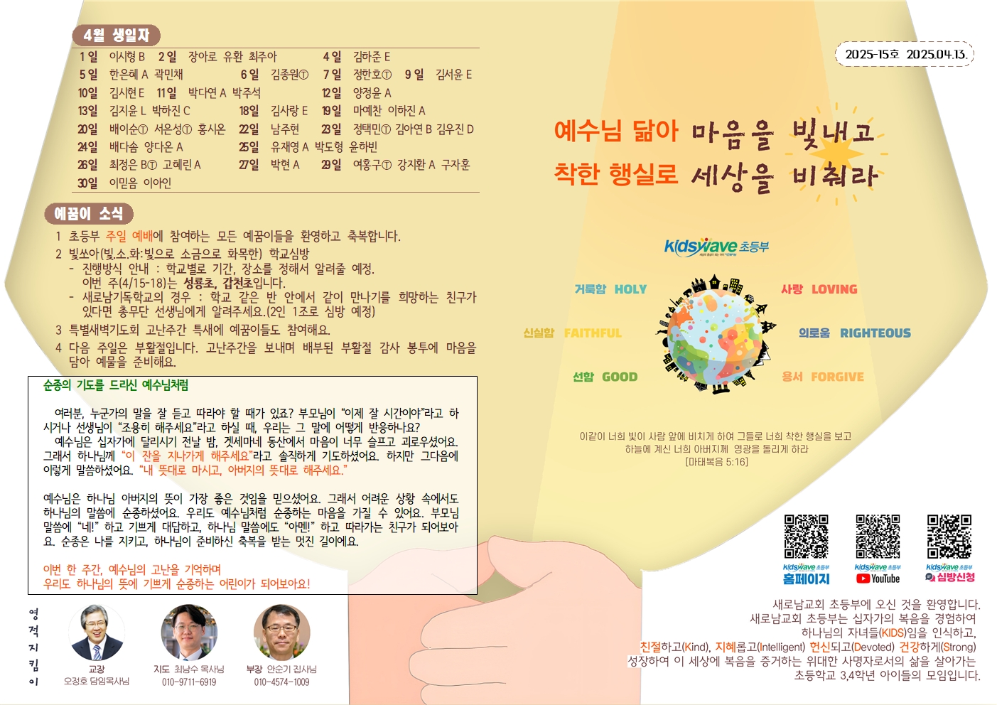2025년 4월 20일 초등부 주보