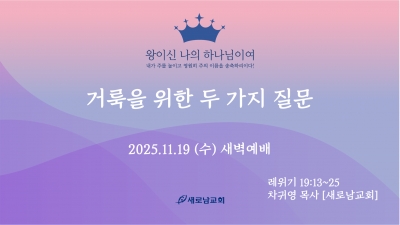 새벽설교 거룩을 위한 두 가지 질문
